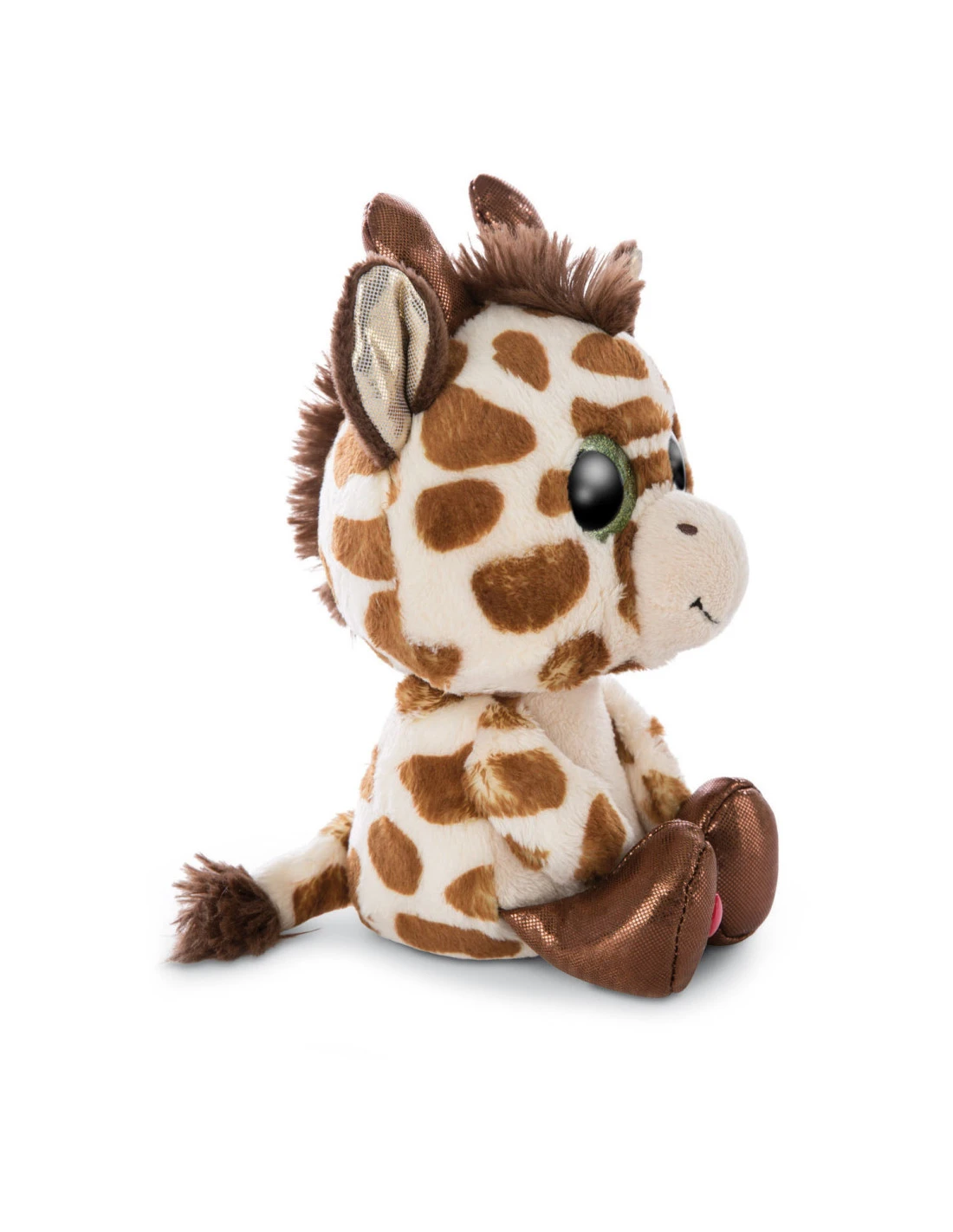 De GLUBSCHIS giraf Halla is bruin gevlekt zoals het hoort bij een echte giraf. Als een typische GLUBSCHI heeft ze grote glinsterende ogen en een schattige bos bruin haar op haar hoofd. Haar schattige oren zijn gevoerd met glitterstof en haar voetjes met de rode NICI Star zijn glinsterend bruin! Wat een geweldige NICI-giraf!