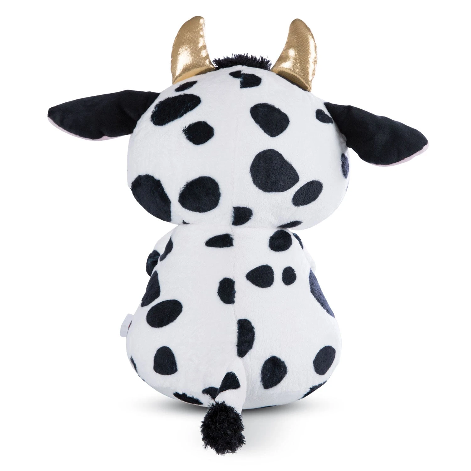 Zwart en wit gevlekt en met goud glinsterende hoorns – dit is de GLUBSCHIS koe Moolon. Perfect voor aan de sleutelhanger van alle boerderijliefhebbers.