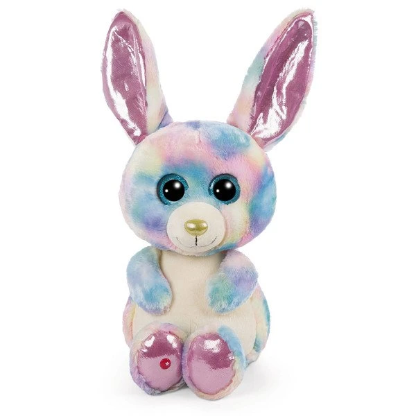 Het konijntje Rainbow Candy is een echte blikvanger met haar kleurrijke vacht en de glinsterende flaporen. Het schattige konijntje kan niet wachten om je nieuwe knuffelvriendje te worden. De pluizige vacht en de grote blauwe glinsterende oogjes zijn gewoon onweerstaanbaar schattig!
