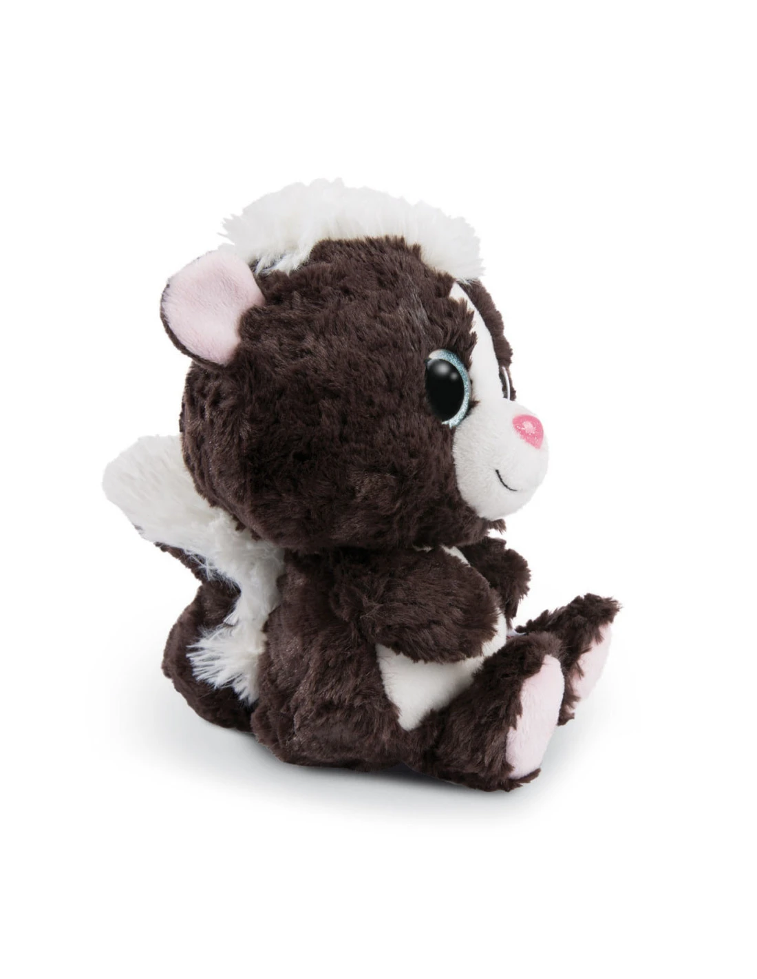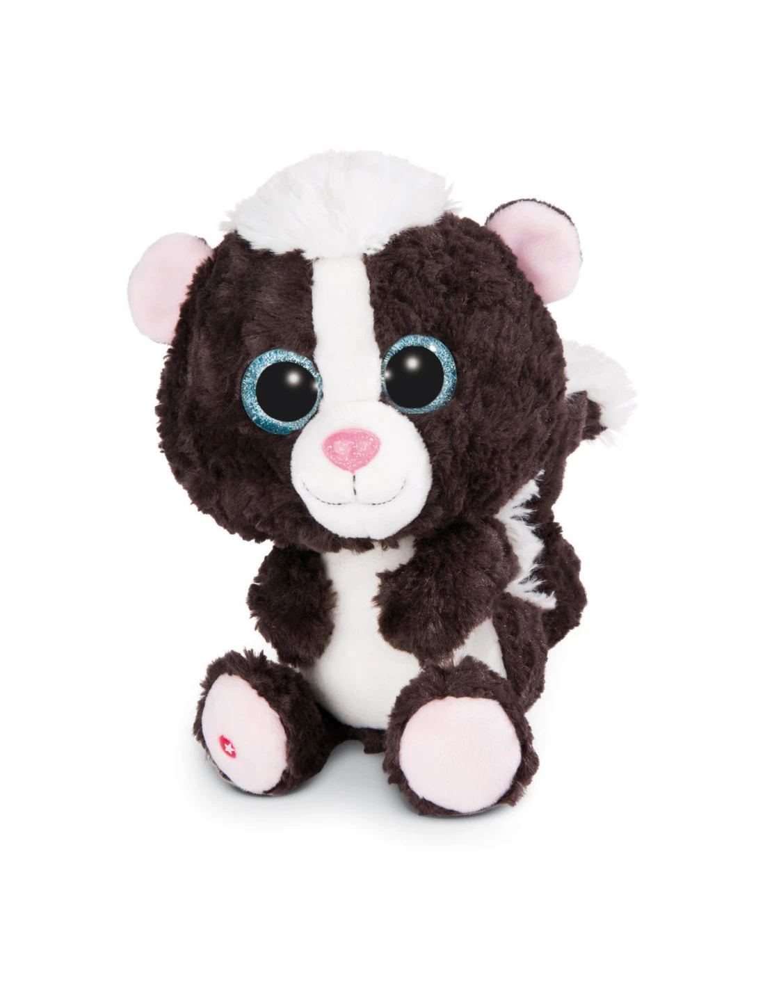 Zwart-witte pluizige vacht, knuffelige gezichtsuitdrukking, grote blauw glinsterende ogen. Dit is onze Skunk Suppi van de GLUBSCHIS! Met zijn pluizige plukje haar op zijn hoofd is hij een brutale vriend en een geweldige knuffel.