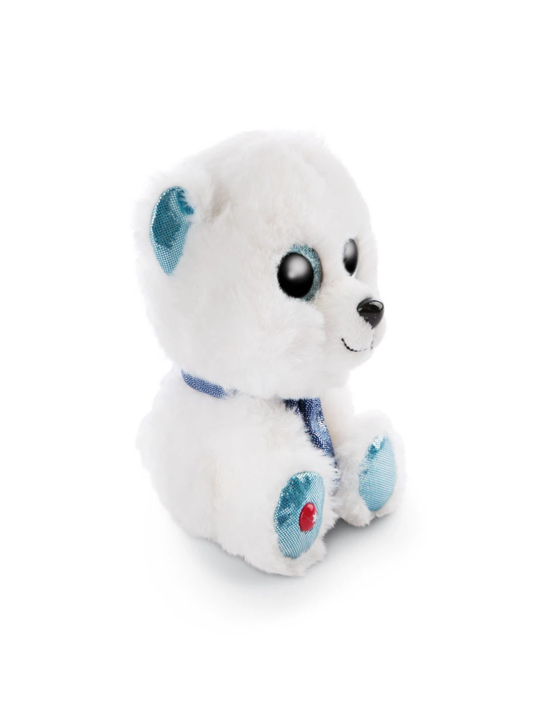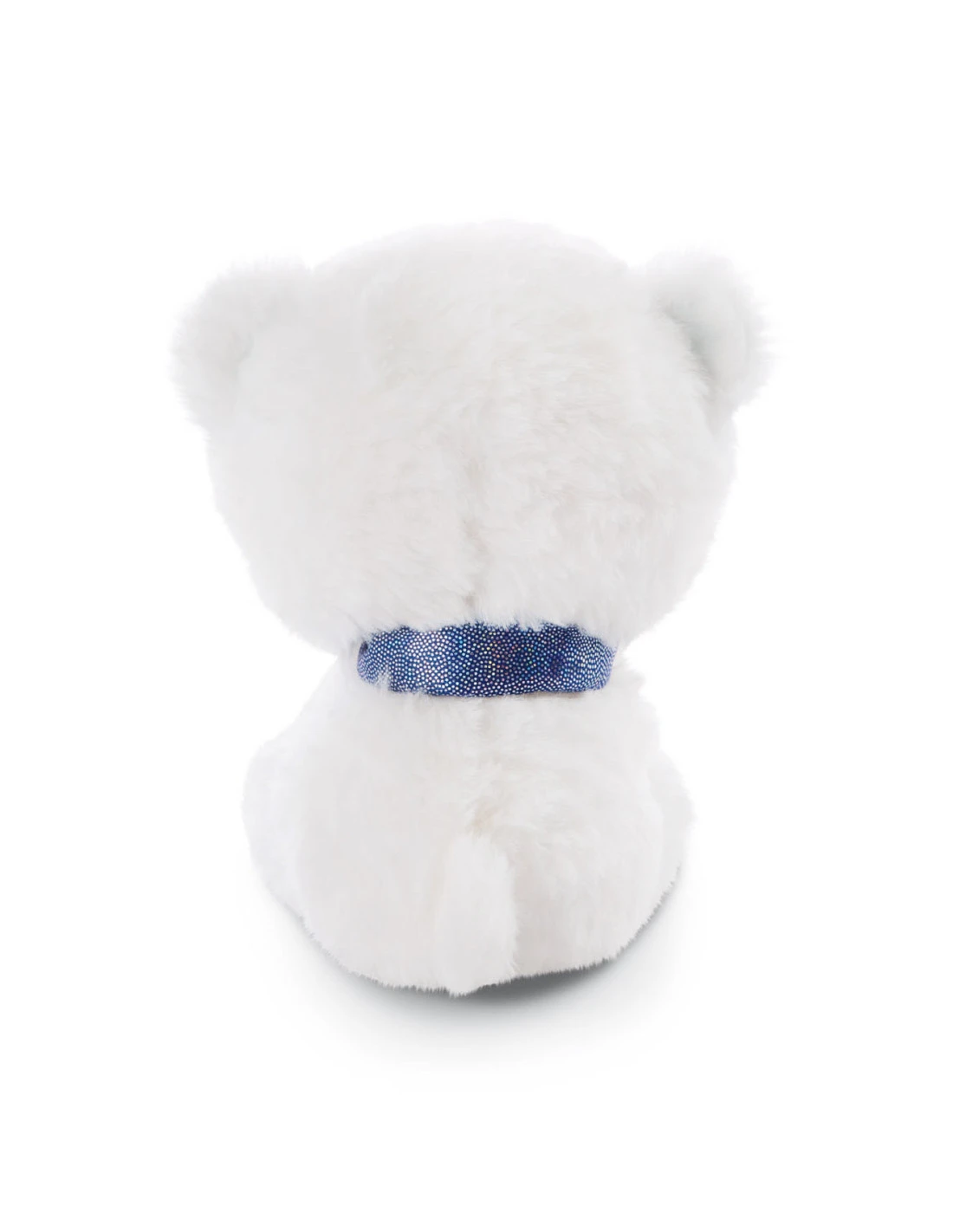 De GLUBSCHIS knuffel ijsbeer Benjie is een pluizige witte ijsbeer met glinsterende blauwe oren en pootjes! De glinsterende blauwe sjaal is bijzonder schattig en houdt de GLUBSCHIS lekker warm in de winterse sneeuwvlaag!